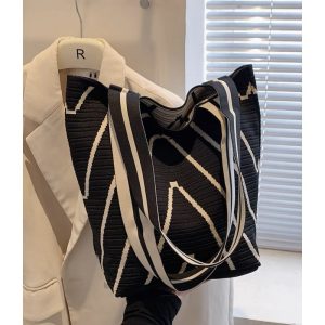 Amazon ebay retro houndstooth wool knitted shoulder bag versatile casual bag knitted tote bag handbag