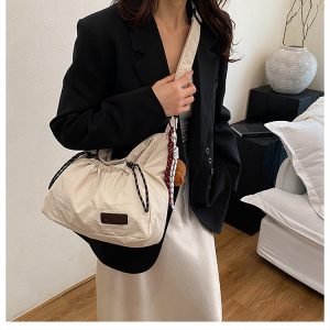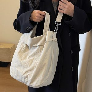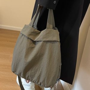 Slack Tote Bag Women’s 2024 New Drawstring Canvas Bag Commuter Lightweight Tote Bag Large Capacity Shoulder Bag
