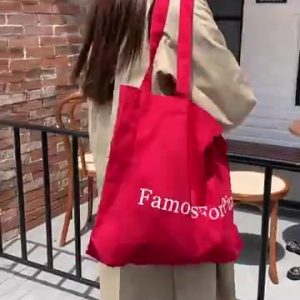 2024 Fashion New Red Letter One-Shoulder Tote Casual Student Niche Commuter Large Capacity Canvas Bag