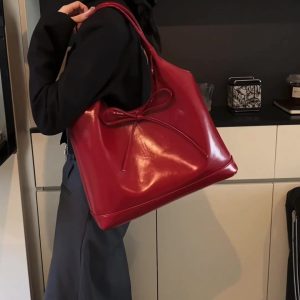 Korean new bow niche pu women’s bag simple commuting literary shoulder bag large capacity underarm tote bag women