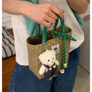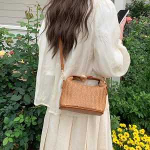 South Korea Dongdaemun ins straw woven small bag 2025 summer new casual women’s bag hand-held one-shoulder crossbody bag