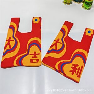 New Year Persimmons and Persimmons and Red Festive Wrist Pack All-match Souvenir Handbags Wedding Candy Housewarming Knitted Bags New Style