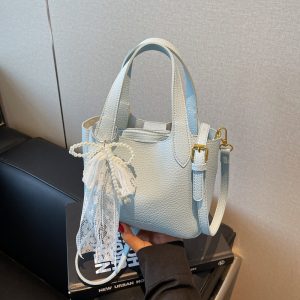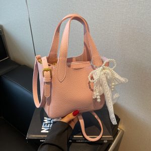 High-end and fashionable simple hand-held bucket bag for women 2025 spring new Korean version of lychee pattern one-shoulder crossbody bag