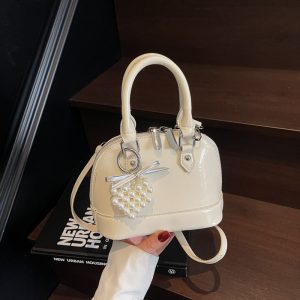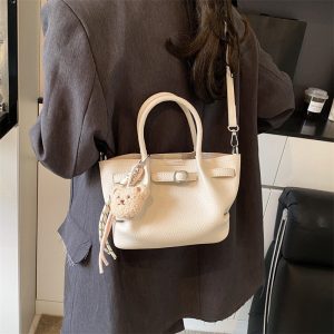 Handbag bag cute hanging ornament shoulder bag solid color texture women’s bag foreign trade high-end crossbody bag bags