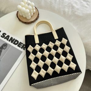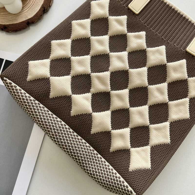 2024 new bag crossbody bag Amazon bag knitted bag houndstooth tote bag cross-border bag shoulder bag women’s trendy