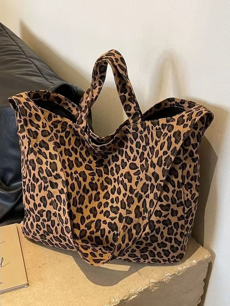 2025 hit large-capacity leopard print tote bag, canvas bag shoulder bag, hand shopping bag, crossbody bag for women