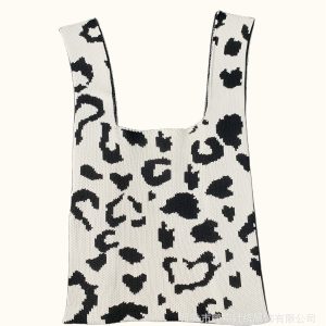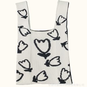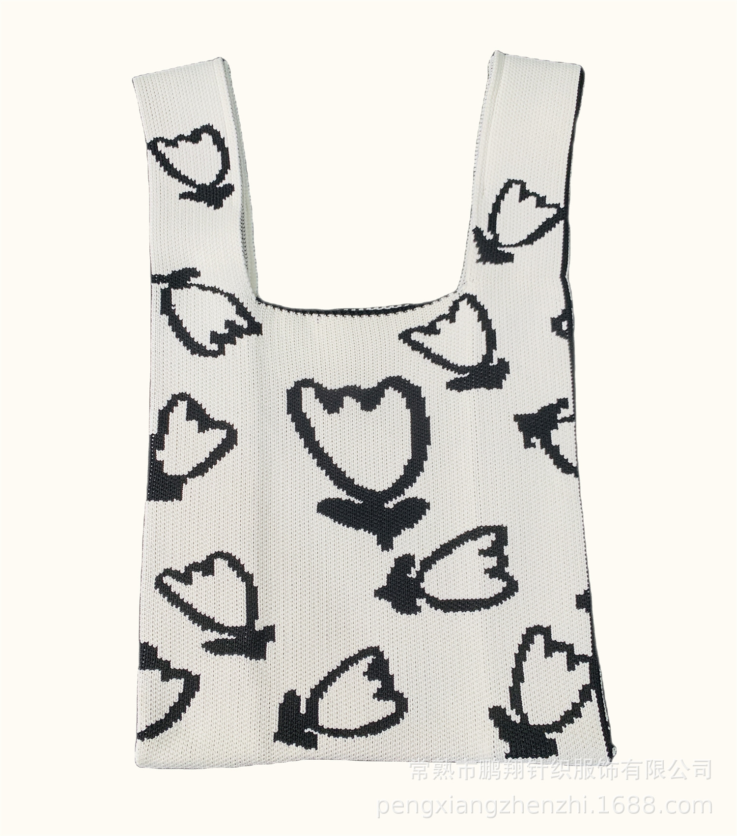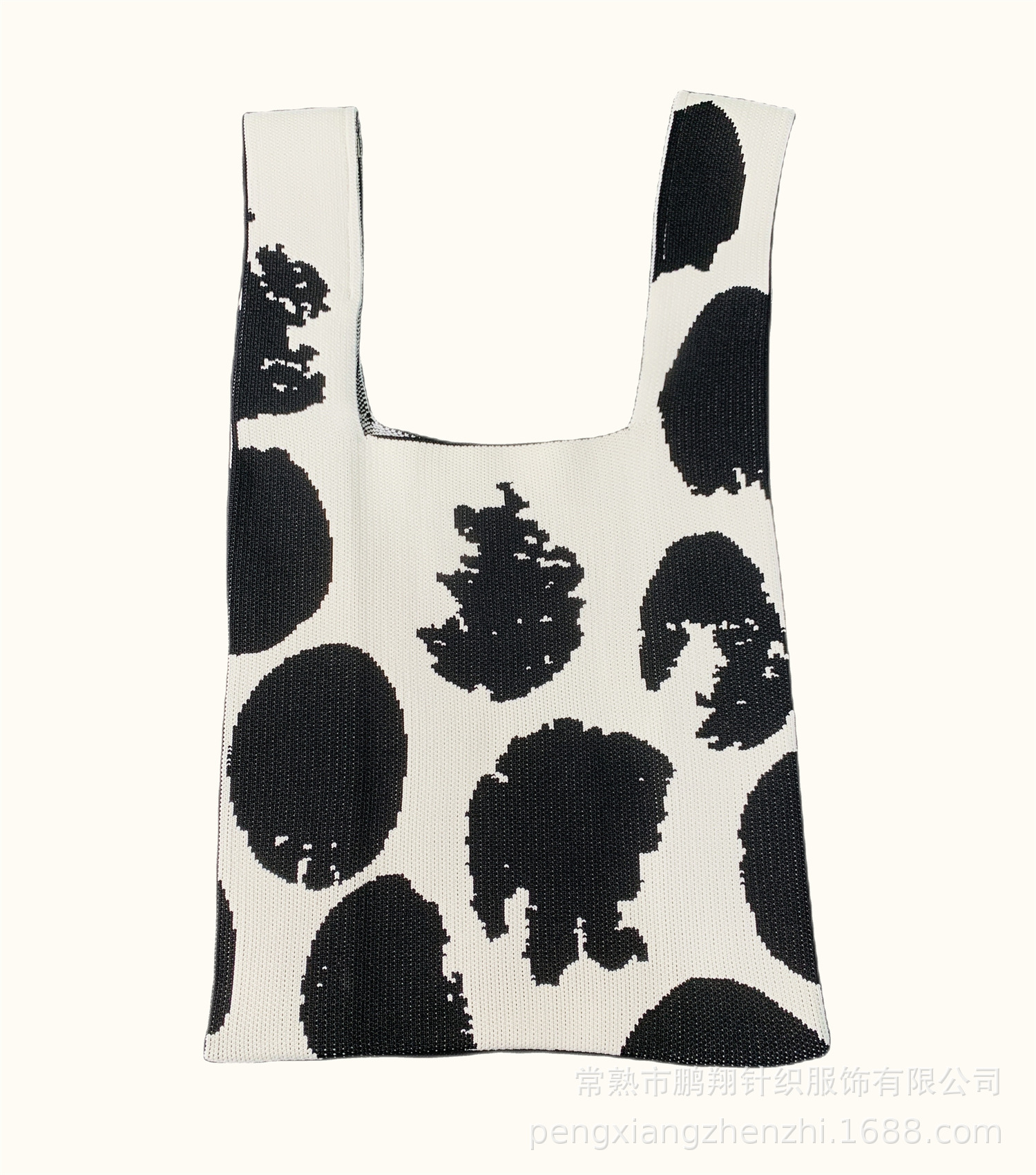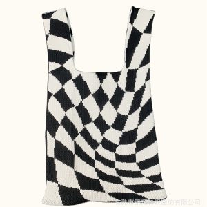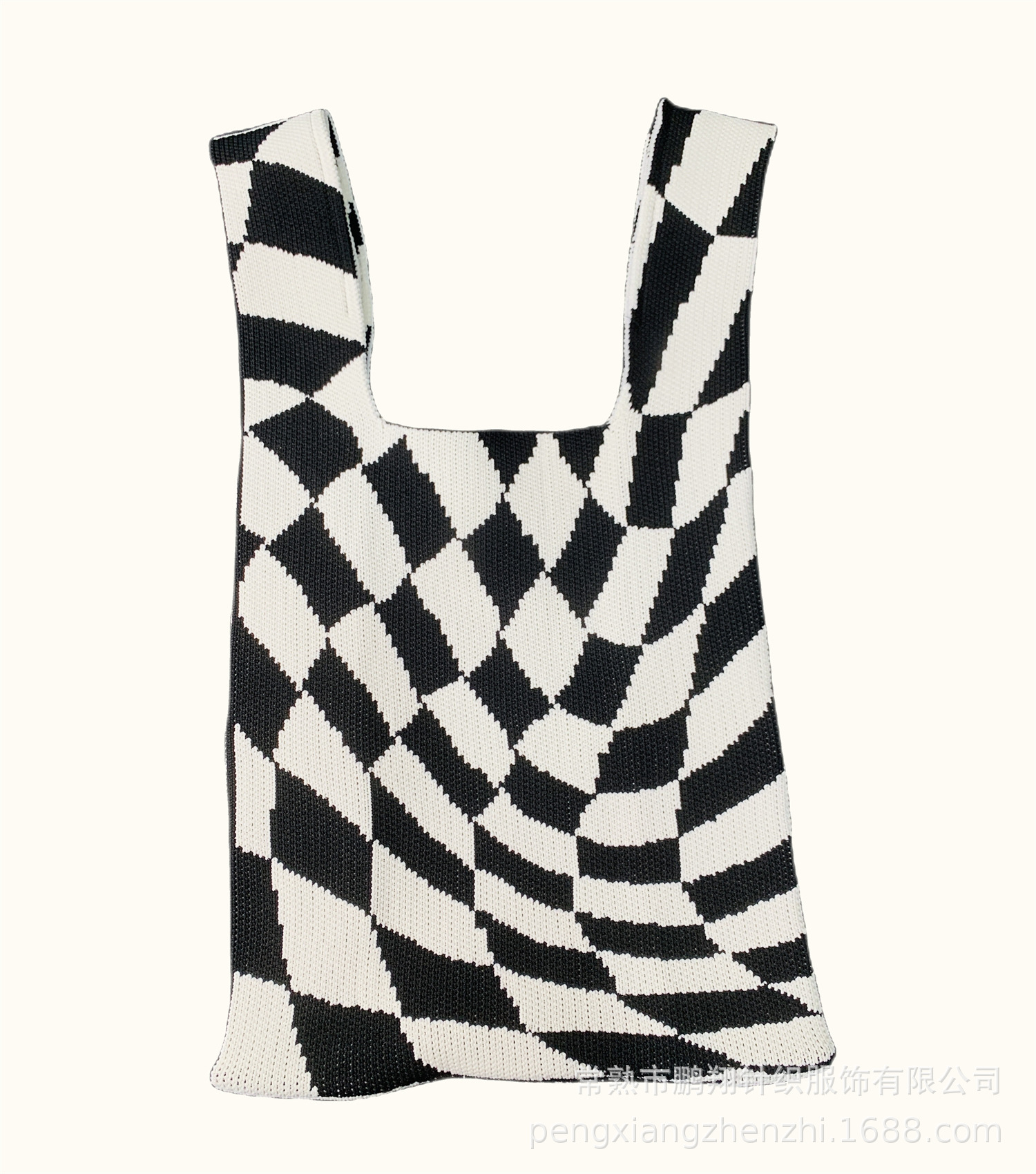 Amazon cross-border black and white checked vest knitted one-shoulder tote bag knitted hand-held shopping bag women’s knitted bag