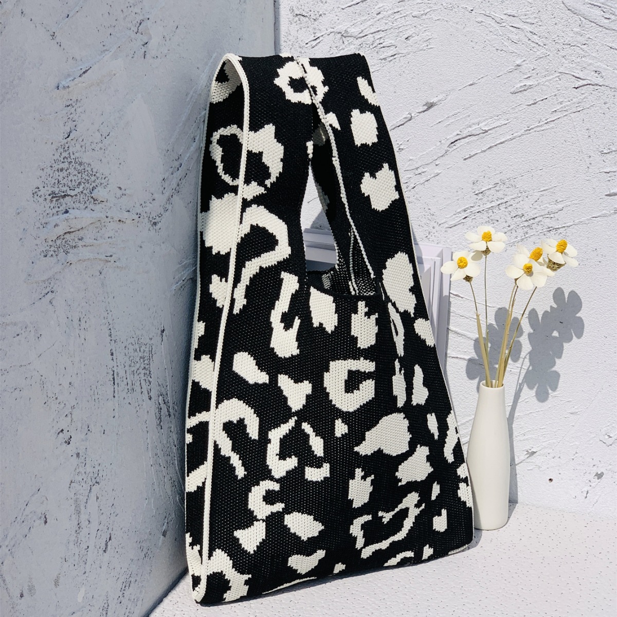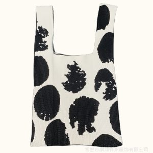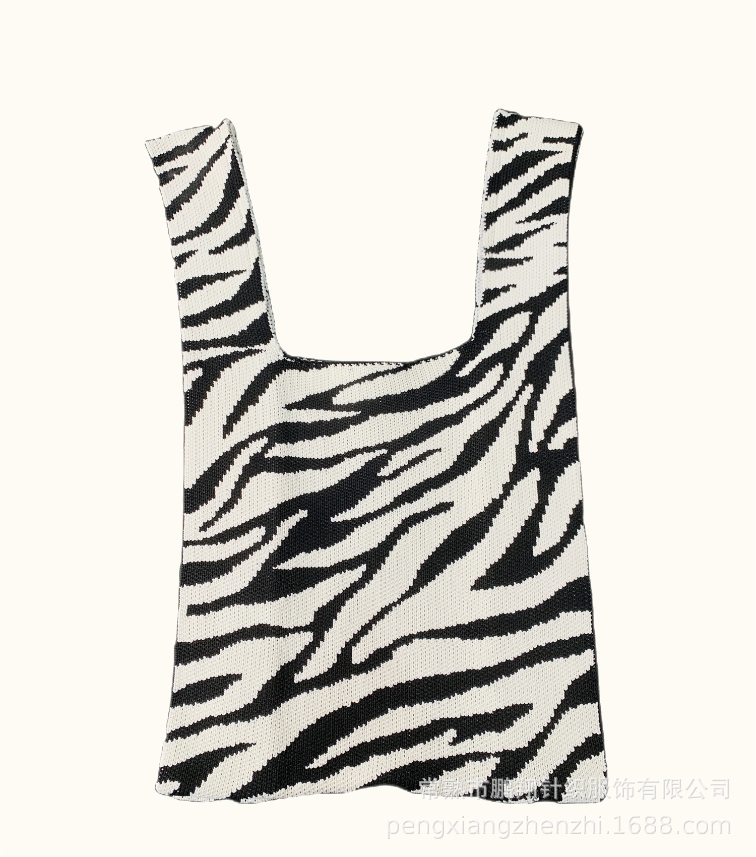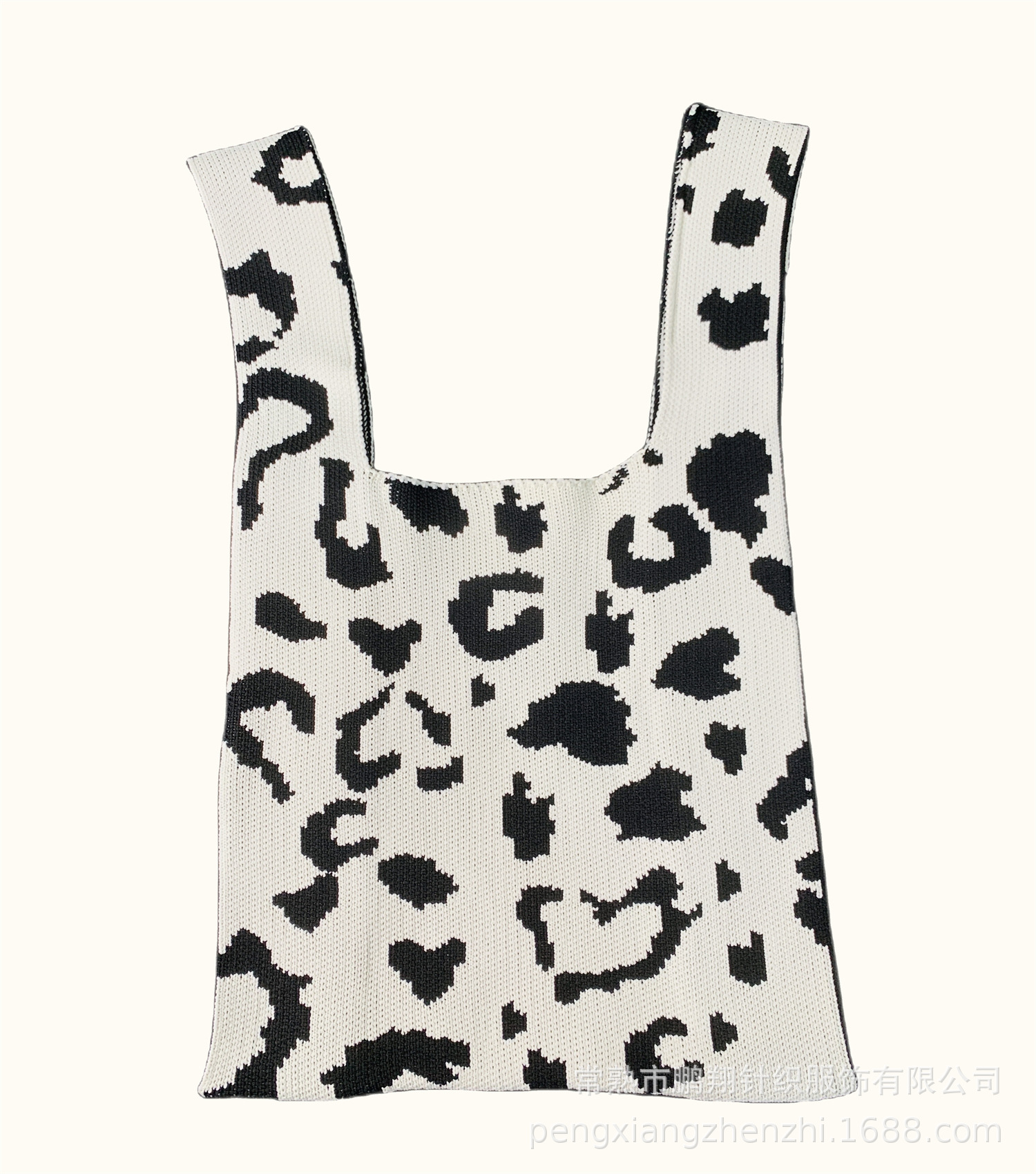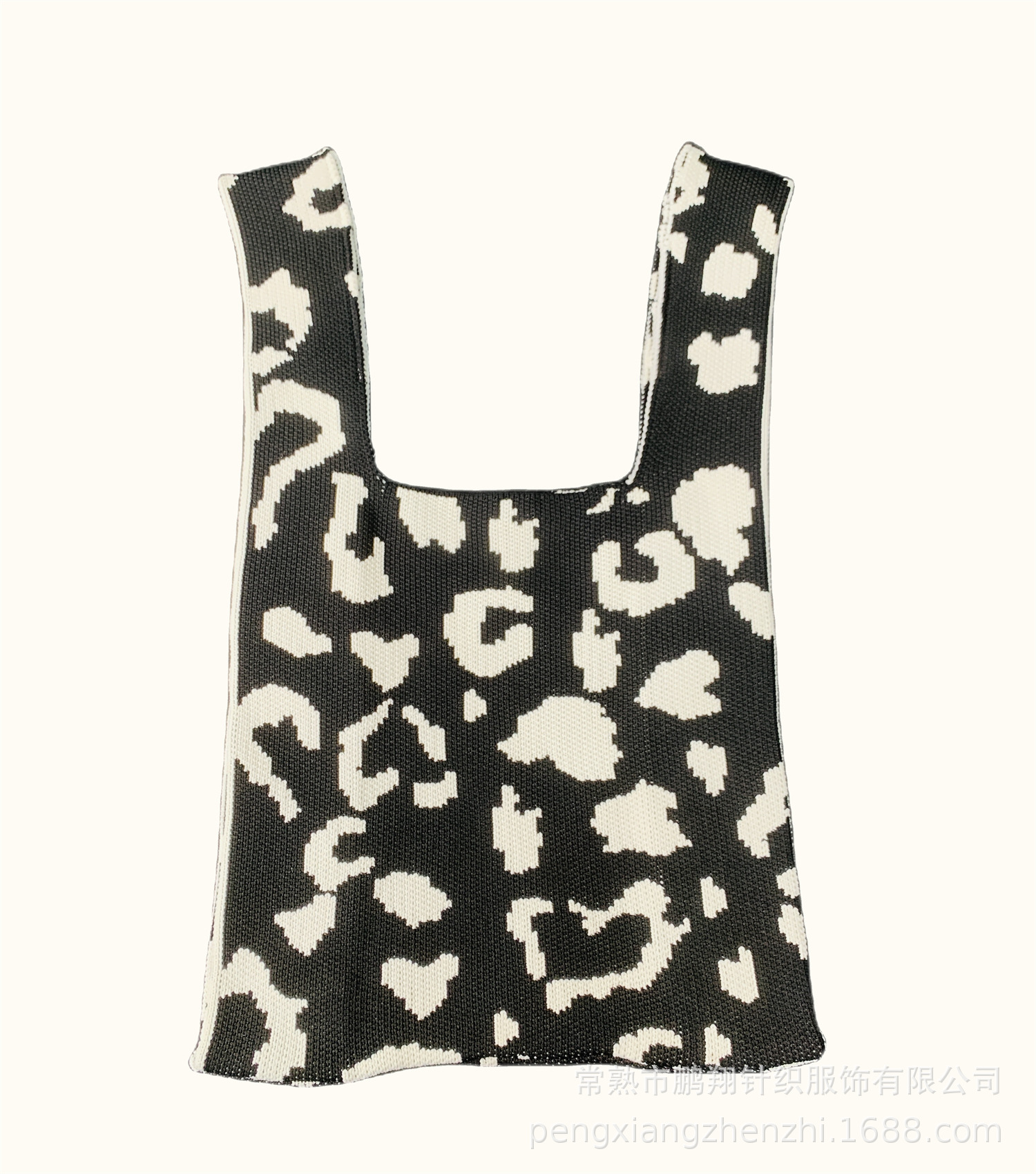 Amazon cross-border black and white checked vest knitted one-shoulder tote bag knitted hand-held shopping bag women’s knitted bag