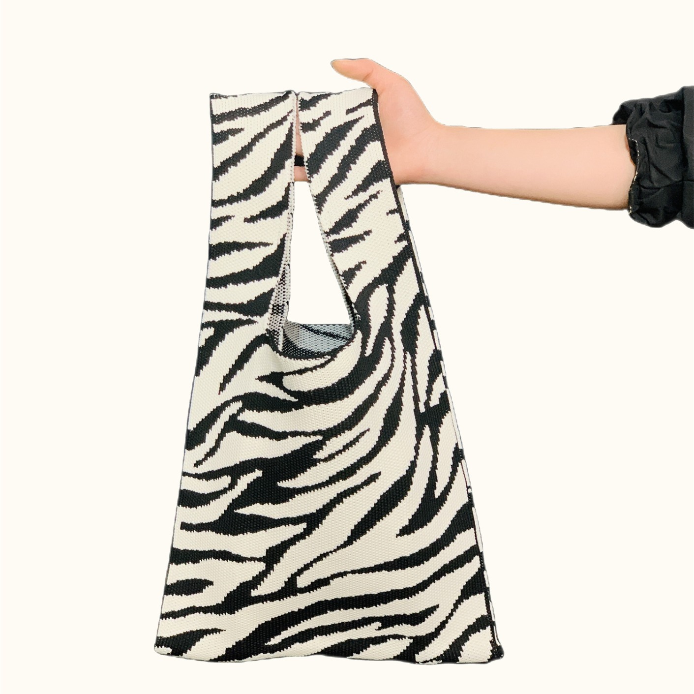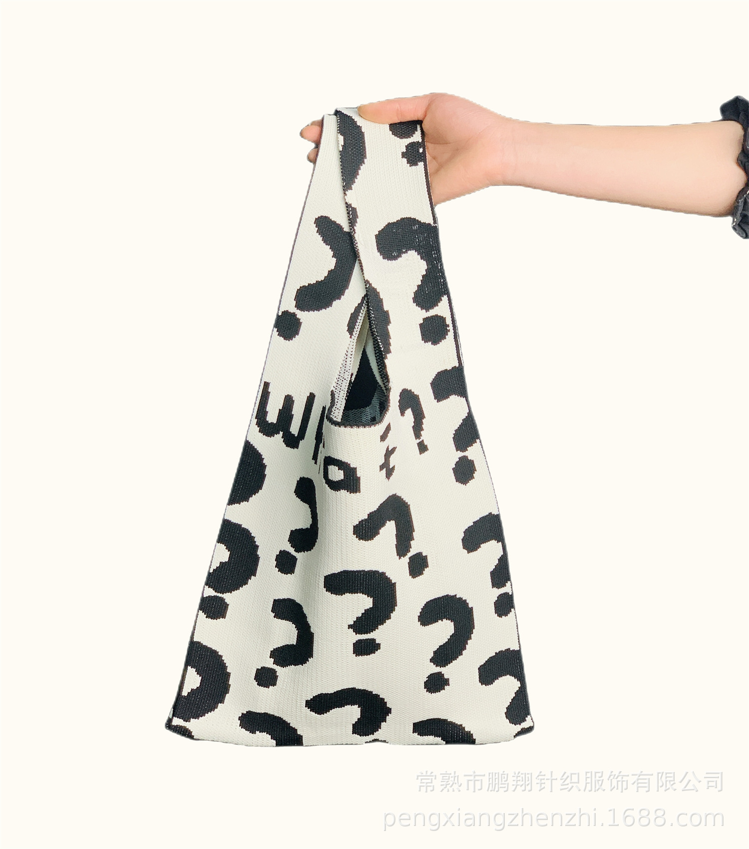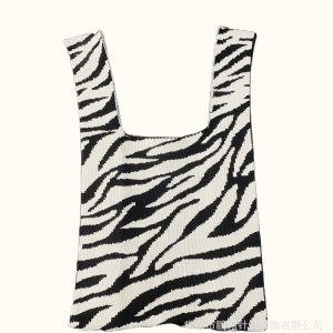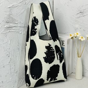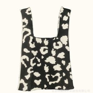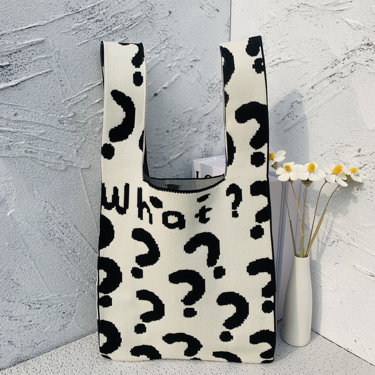 Amazon cross-border black and white checked vest knitted one-shoulder tote bag knitted hand-held shopping bag women’s knitted bag