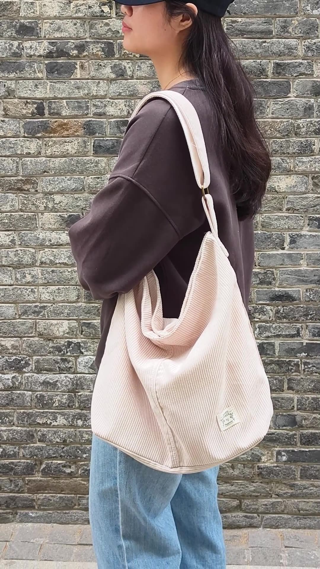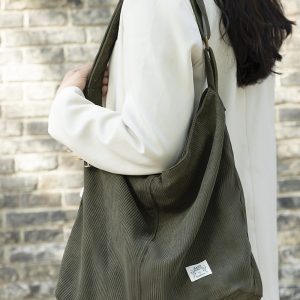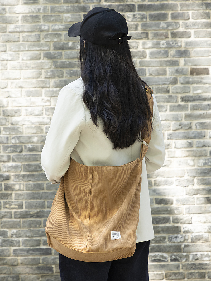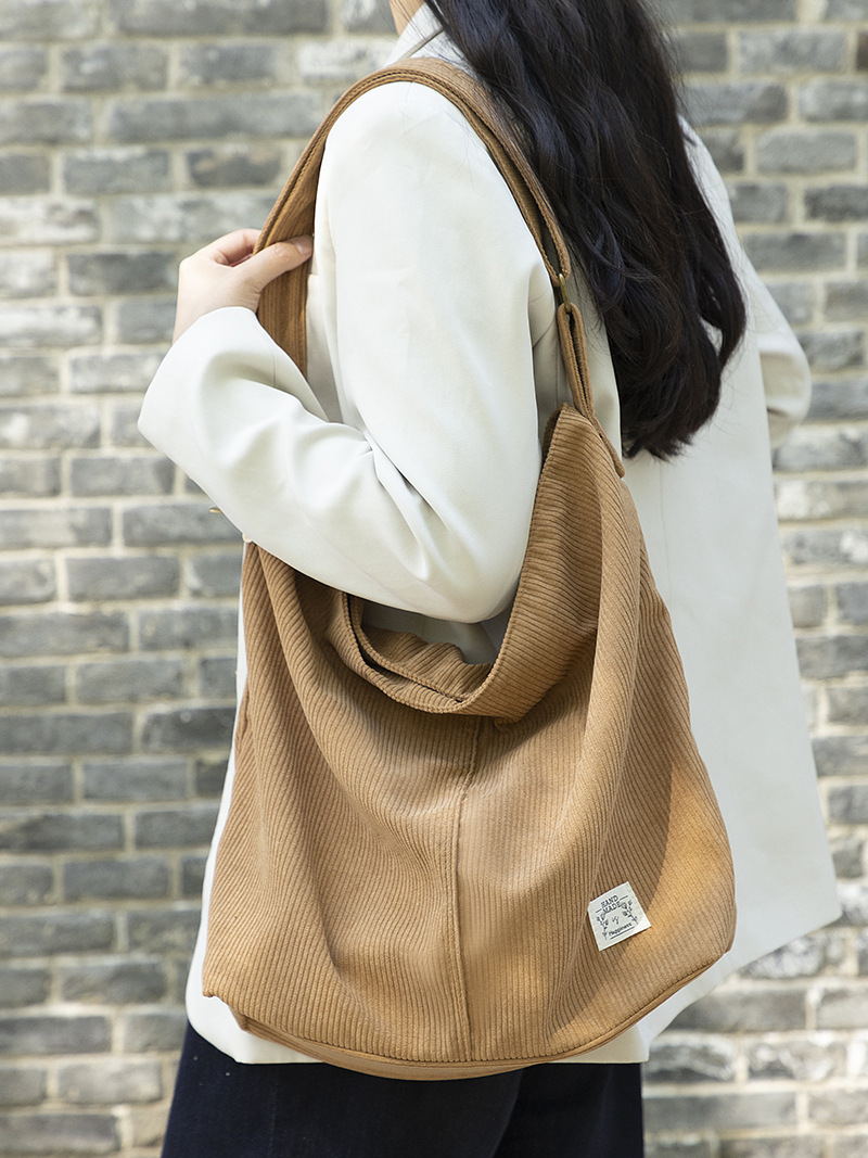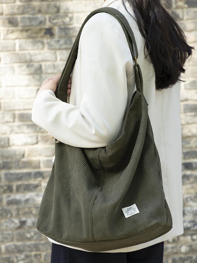 Amazon’s new solid color corduroy zipper handbag casual large capacity commuter one-shoulder handbag