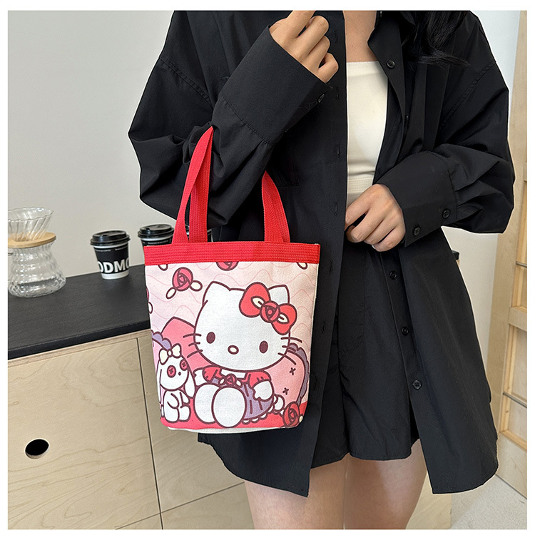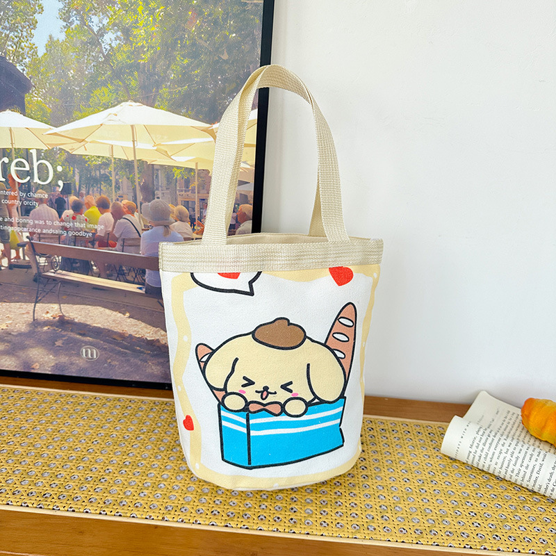 Bucket carrying Korean style girl’s heart mother bento bag to work small bag children’s fun graffiti canvas bag cute illustration
