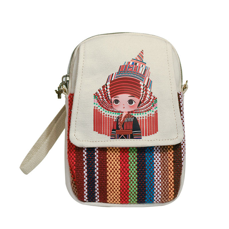 Canvas crossbody bag for women 2025 new summer lightweight small bag fashionable vertical and multi-layer mobile phone bag