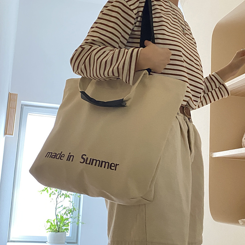 Classic large capacity shoulder bag for women simple letter printing canvas bag casual hand tote bag large capacity