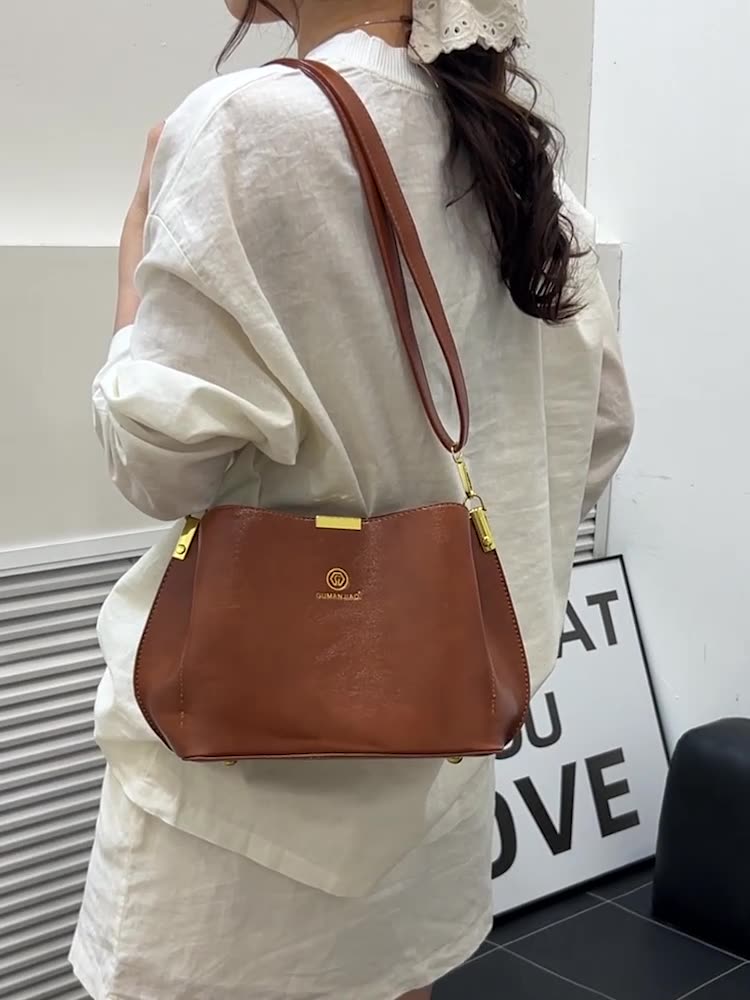 Cross-border new version of light retro multi-layer crossbody bag 2025PU large capacity simple elegant atmospheric fashion single-shoulder women’s bag