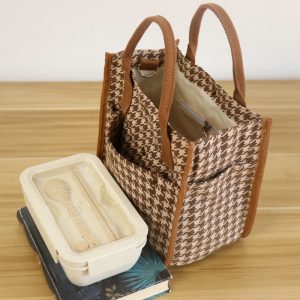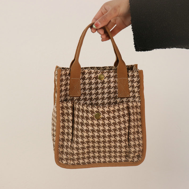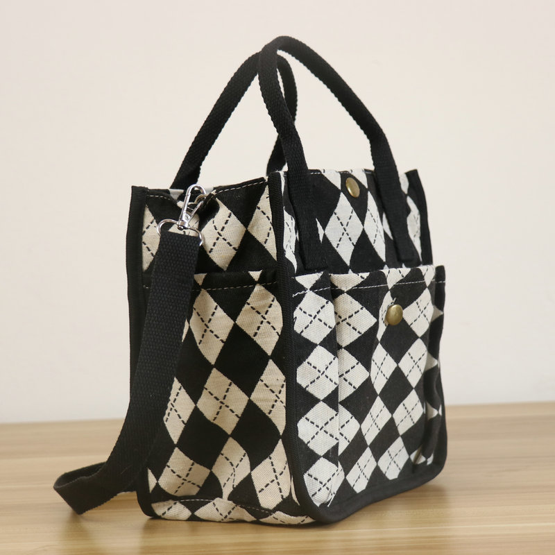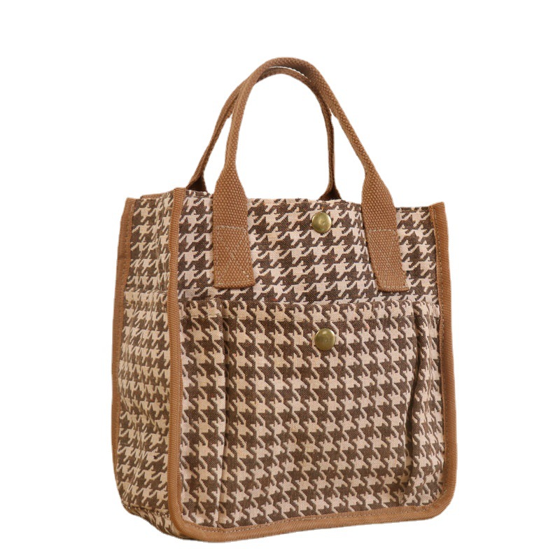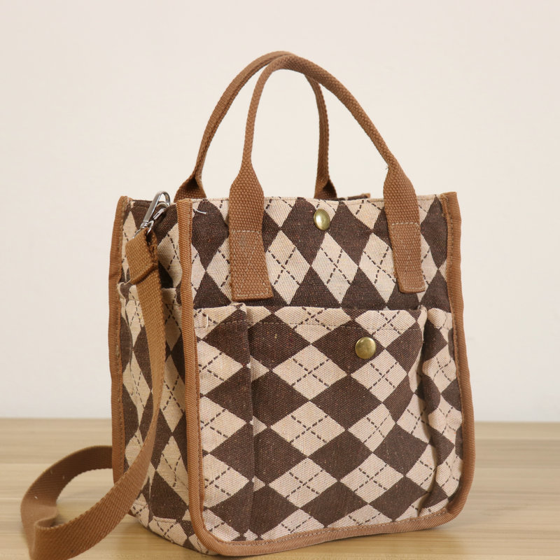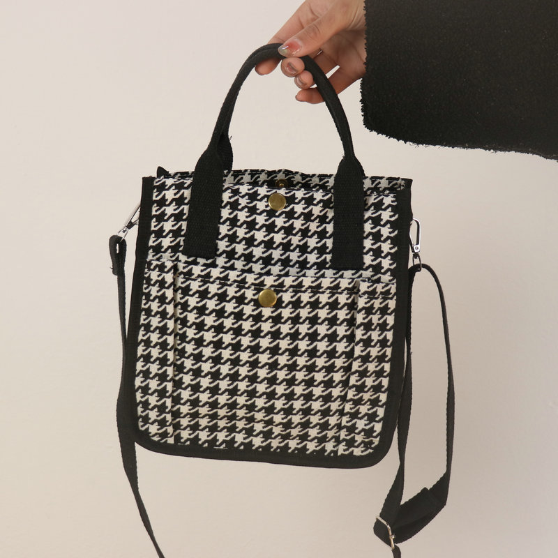 Cross-border retro fashionable multi-pocket jacquard houndstooth bucket bag new casual contrast color one-shoulder crossbody medieval bag