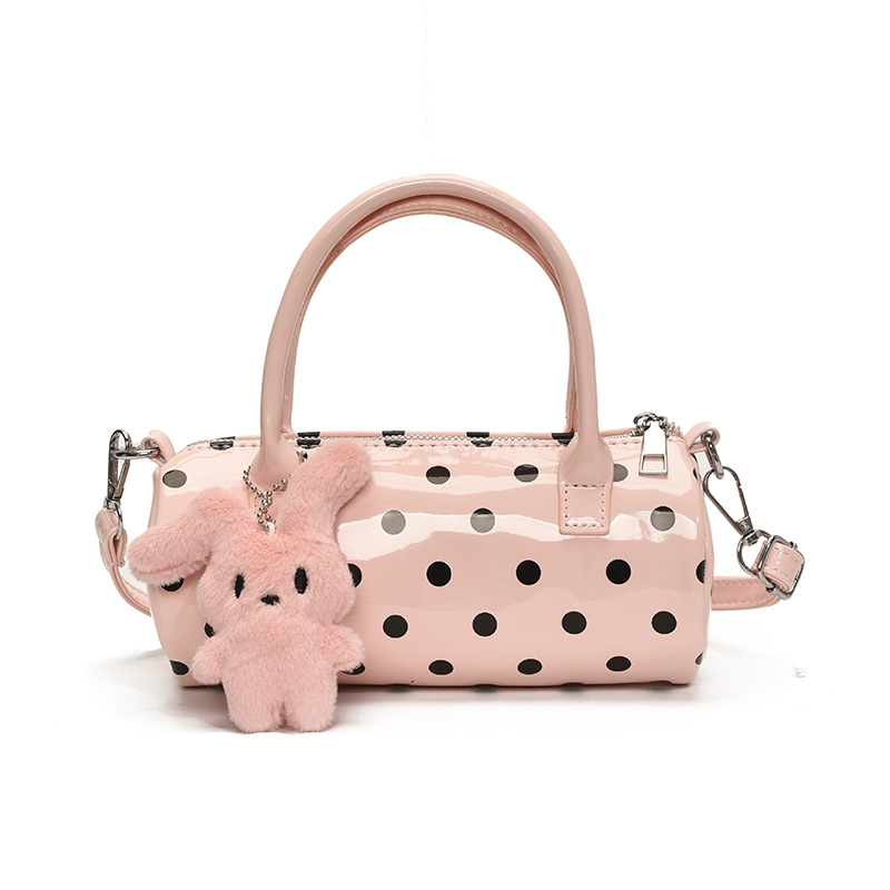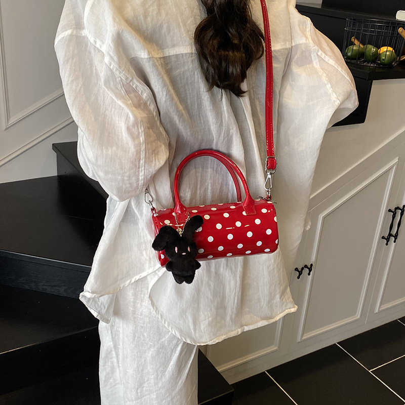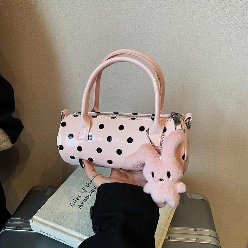 Korean version of cute polka dot hand-held cylinder bag for women 2025 summer fashion versatile casual commuter one-shoulder crossbody bag