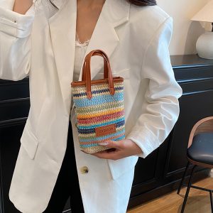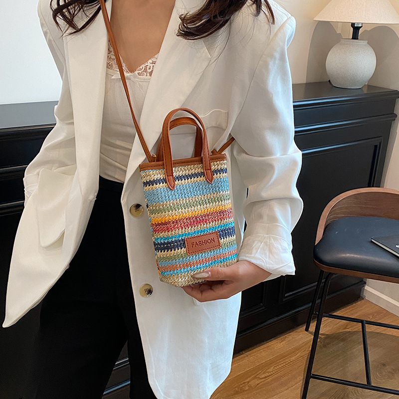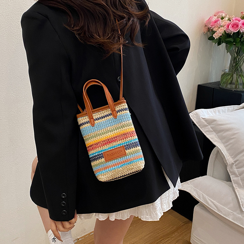Manufacturer wholesale hand-held contrasting woven small bag for women 2025 new trendy and versatile one-shoulder crossbody mobile phone bag