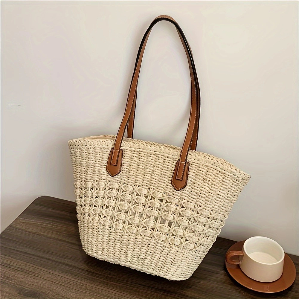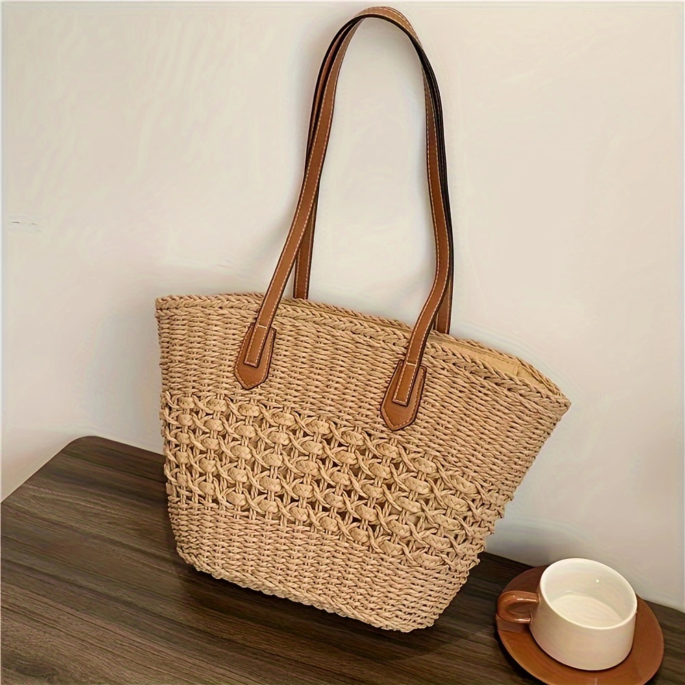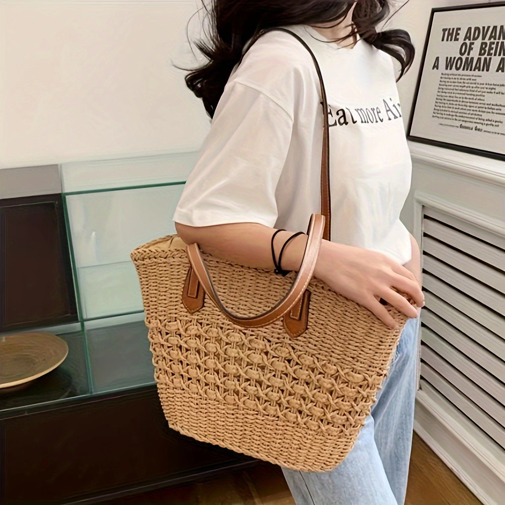 New one-shoulder straw woven bag casual vegetable basket bag handmade woven bag large capacity straw woven bag hand tote bag women