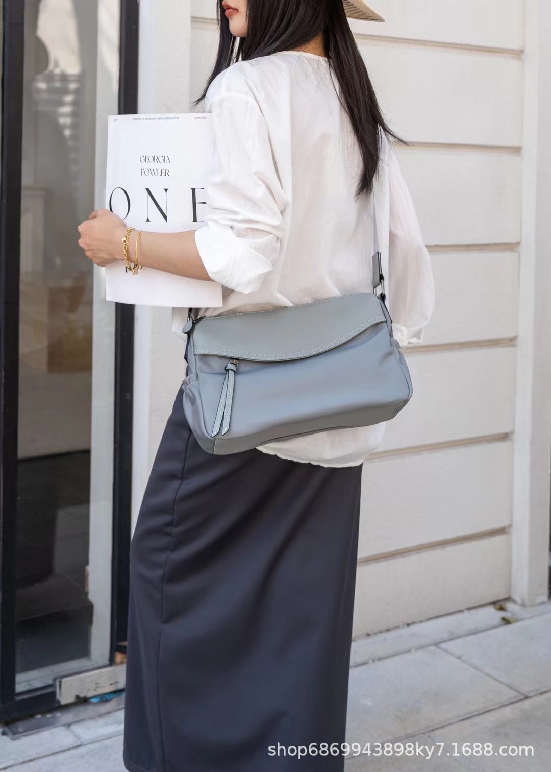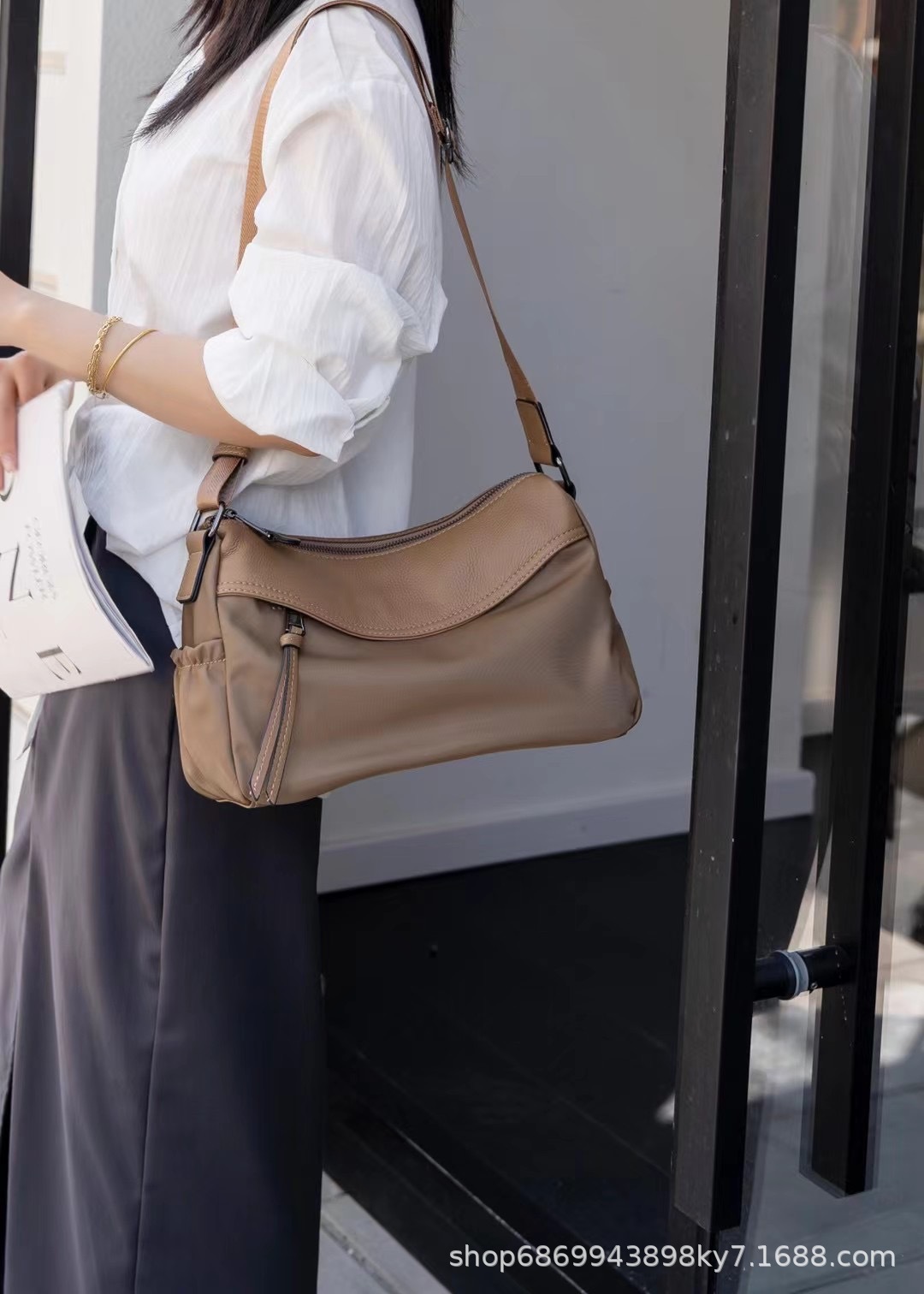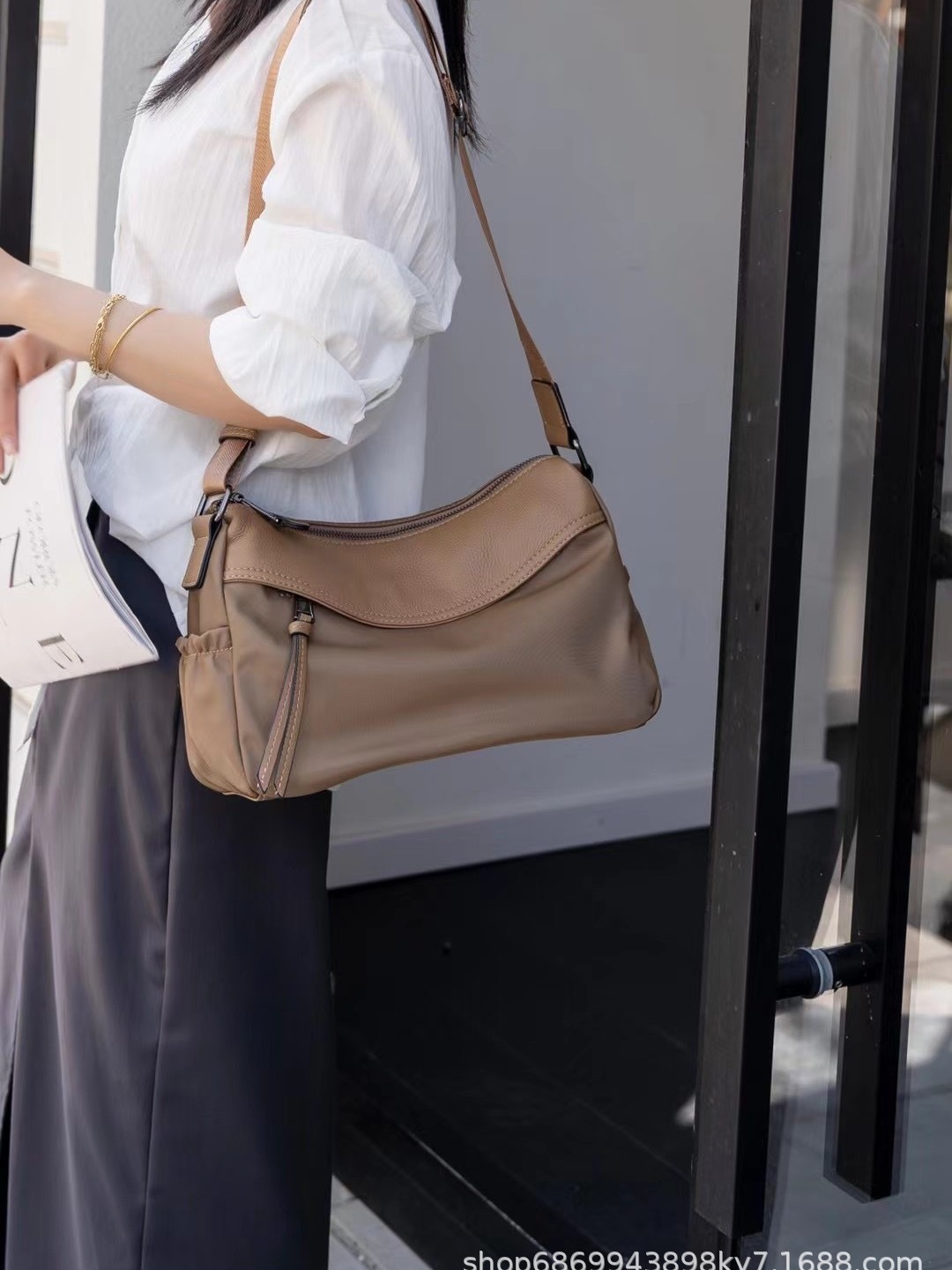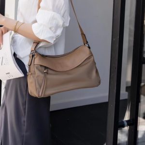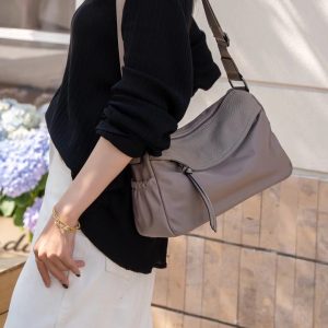 Oxford cloth with top layer cowhide leather genuine leather women’s bag fashionable casual shoulder bag light luxury versatile work travel crossbody bag