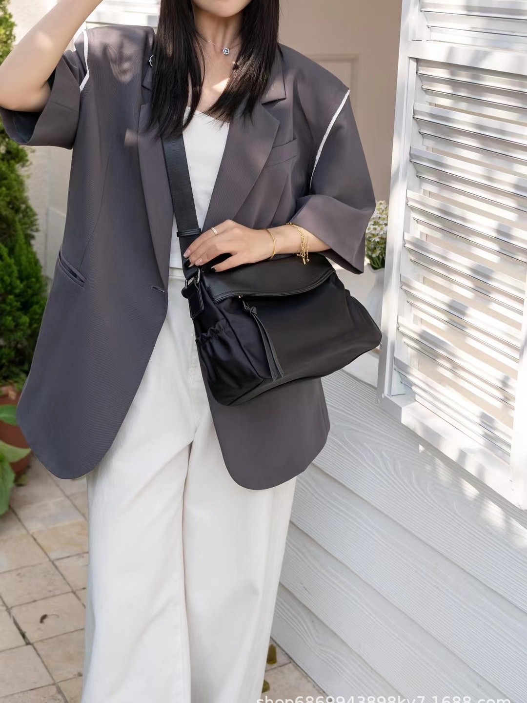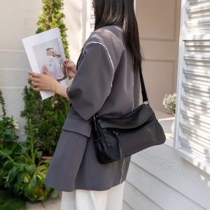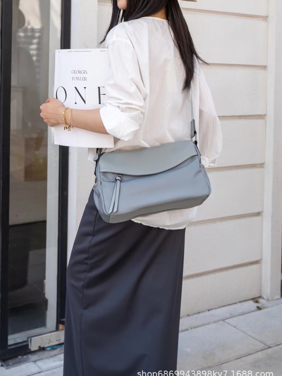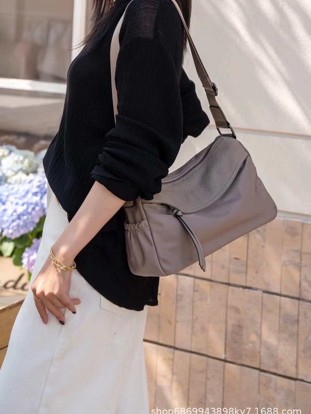 Oxford cloth with top layer cowhide leather genuine leather women’s bag fashionable casual shoulder bag light luxury versatile work travel crossbody bag