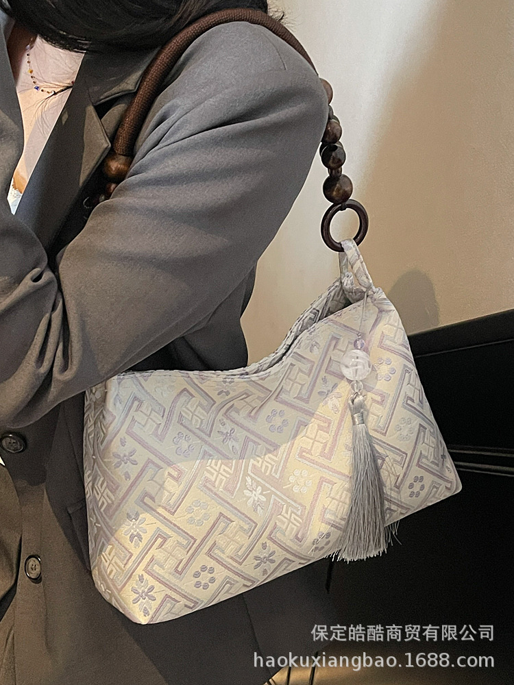Retro summer bag for women 2025 new versatile new Chinese style one-shoulder armpit bag Chinese style embroidered portable Hanfu bag