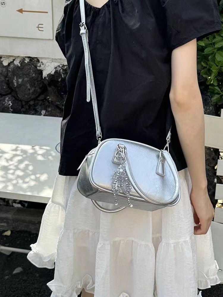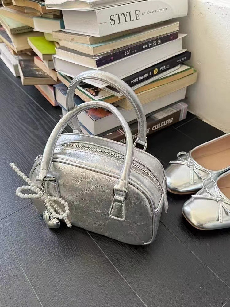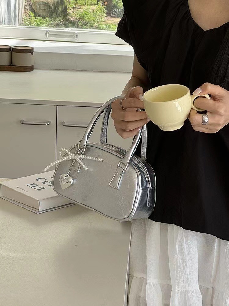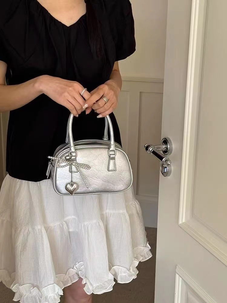 South Korea’s new niche handheld small square bag for women’s exquisite and versatile slanted bowling bag Boston pillow bag