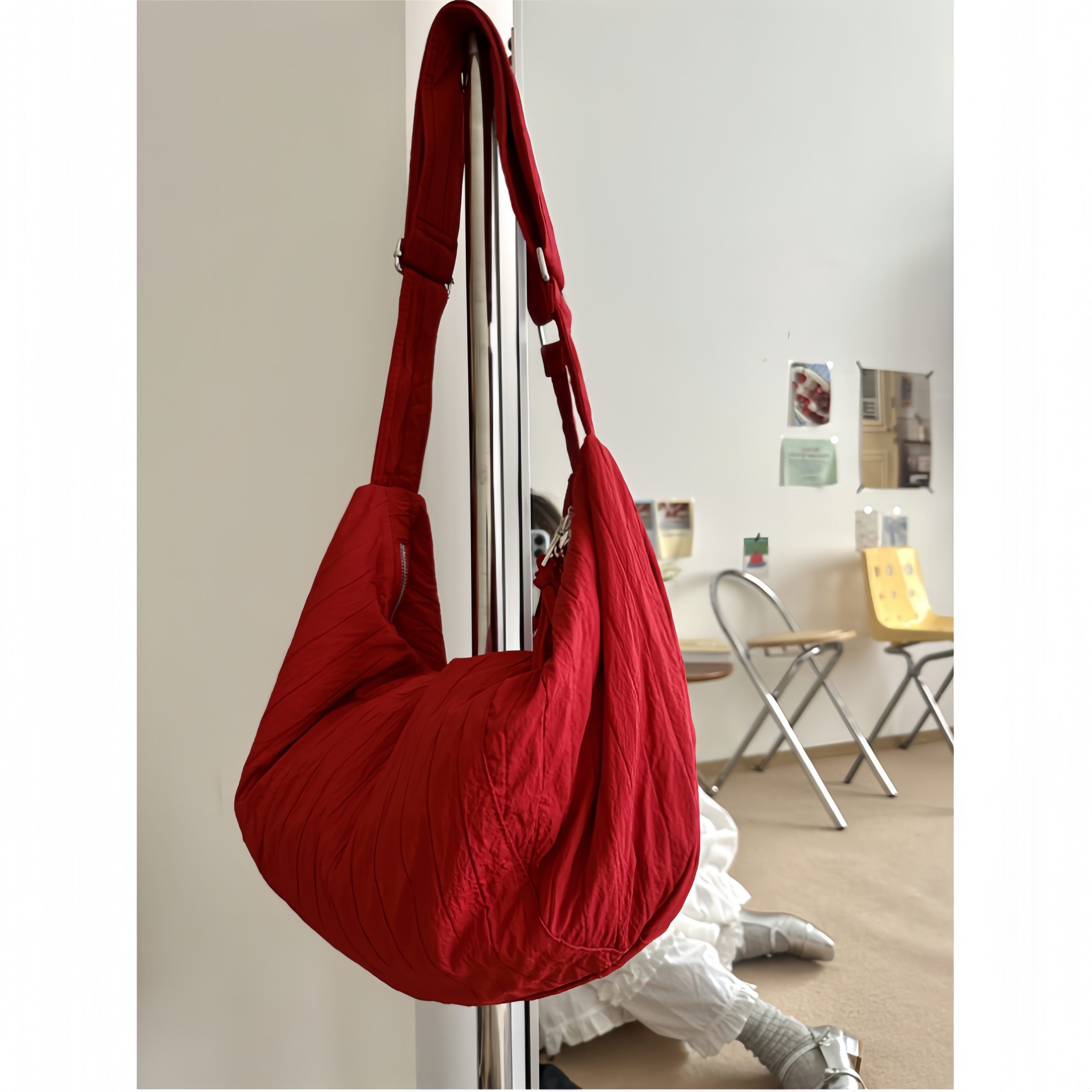 Women’s 2025 new super hot Korean lazy style dumpling bag large capacity red one-shoulder crossbody bag canvas bag